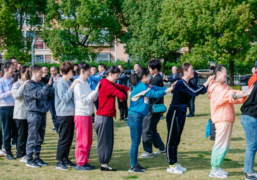 隊(duì)員們在培訓(xùn)老師的引導(dǎo)下,完成了捶背、揉肩、背靠背、多人抱團(tuán)等一系列具有趣味性的活動,在相互配合的過程中,大家更加熟絡(luò),默契指數(shù)不斷提高。