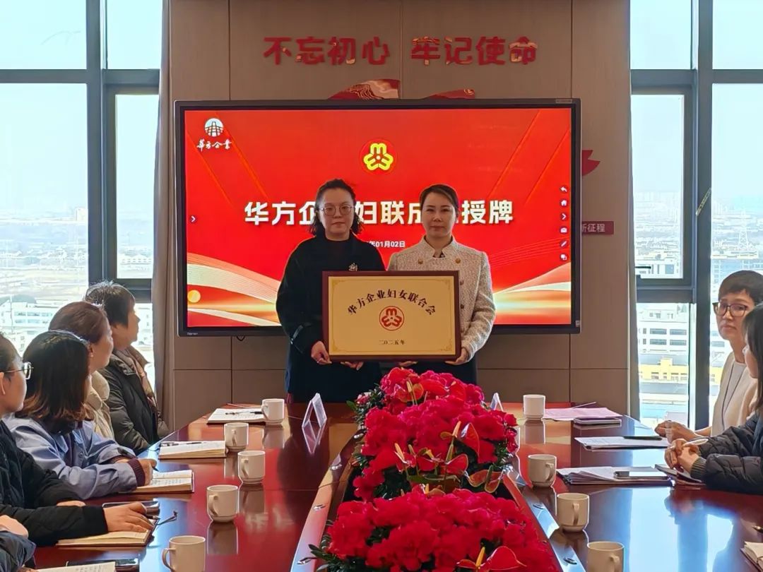 成立大會上,東北塘街道婦聯主席朱敏芳為華方企業婦聯授牌。