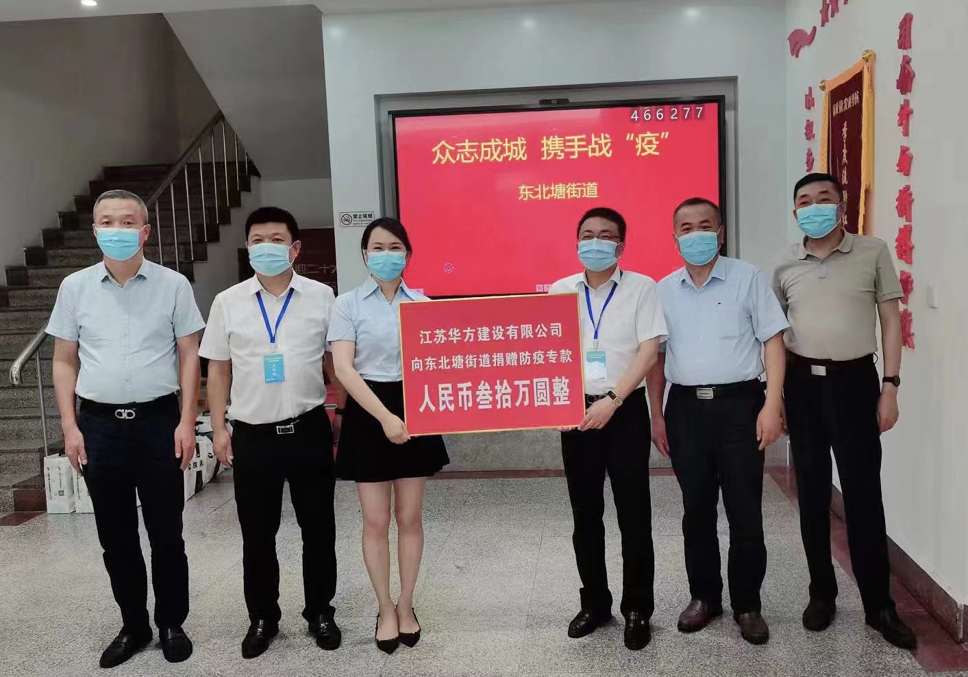 7月9日,江蘇華方建設有限公司董事長、黨支部書記李燕嵐女士代表公司向東北塘街道捐贈防疫???0萬元,用于支持地方政府開展疫情防控工作。這是華方建設繼年初捐贈防疫物資以來,再次用實際行動踐行使命擔當,履行社會責任,譜寫了又一曲“政企攜手、共抗疫情”的戰(zhàn)“疫”之歌。