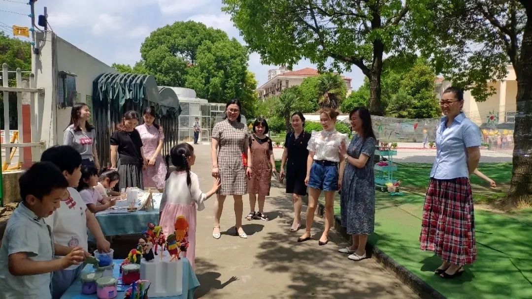 李董事長還觀看了孩子們親手制作的盆栽、扎染等手工藝品,對孩子們的畫作贊不絕口。