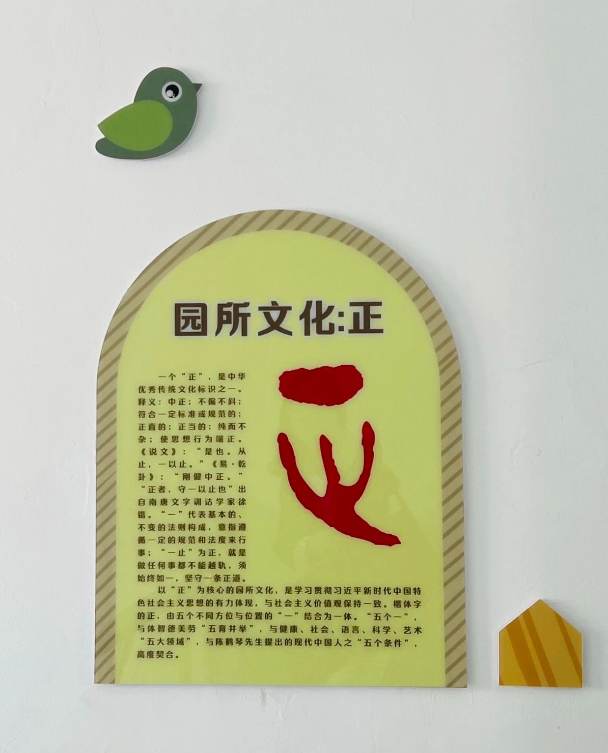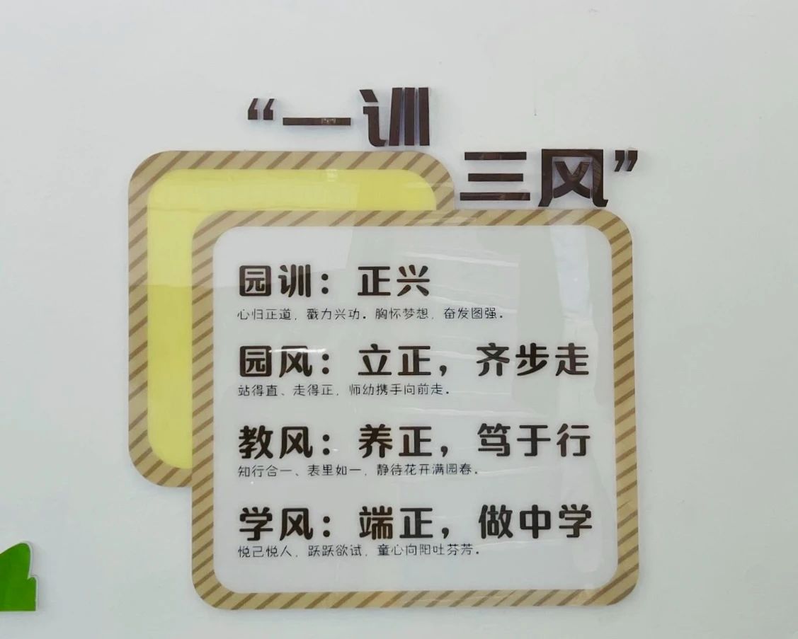 園長也向大家介紹了幼兒園的“一訓三風”,即,園訓:正興,三風:立正、養正、端正。