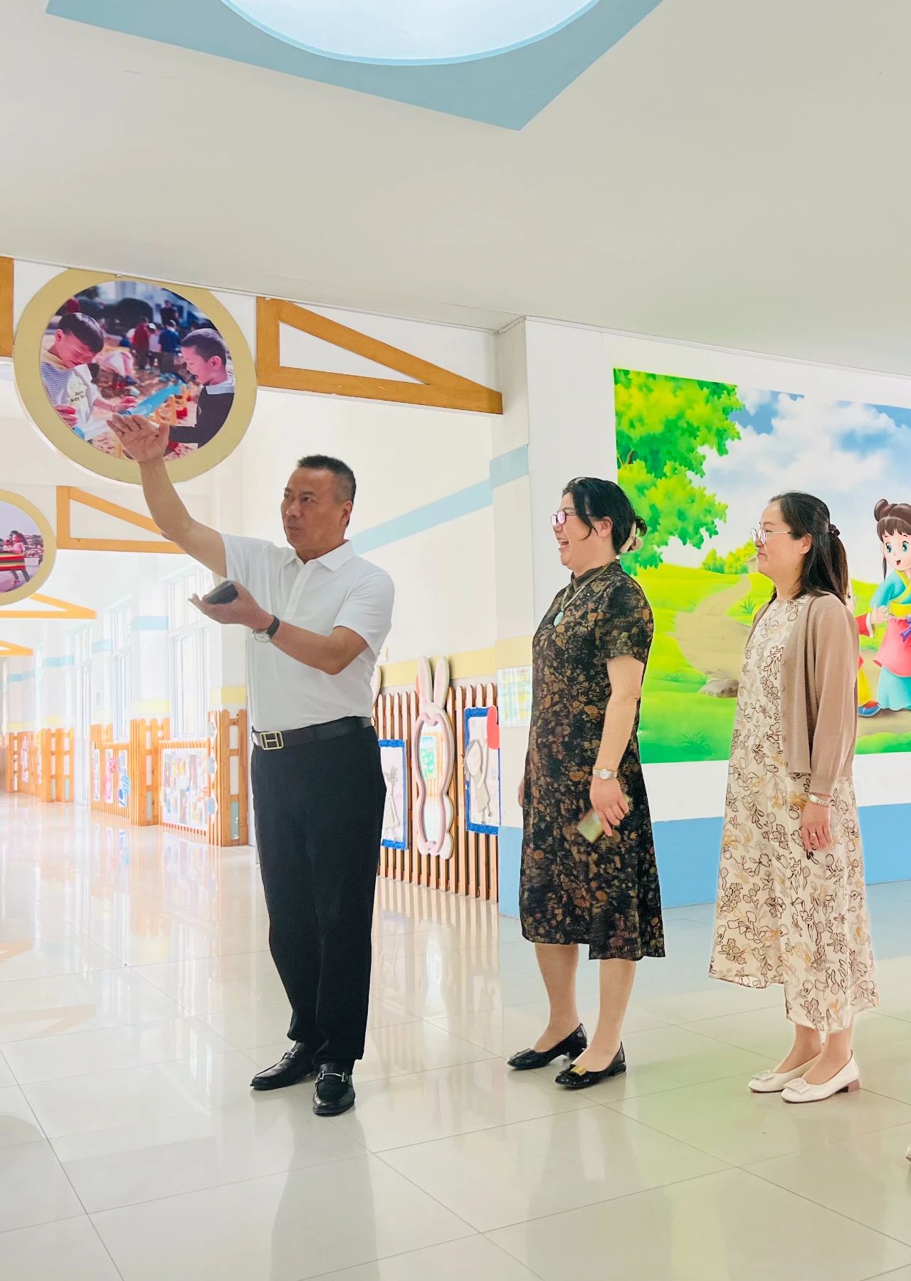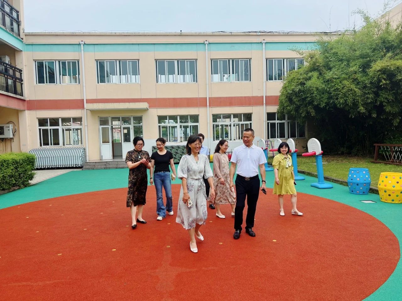 在園長和教師的陪同下,李正興和李燕嵐參觀了幼兒園的戶外場地、孩子的休息室和活動室,了解了孩子們的學習生活情況。