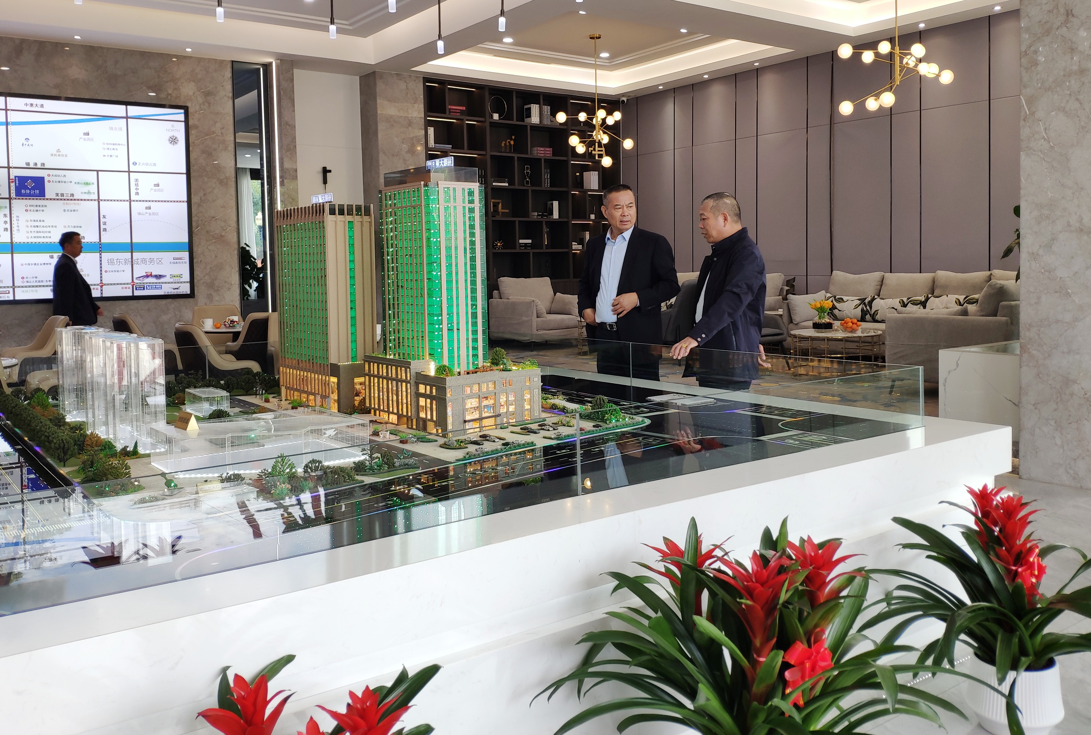 駐足沙盤,領導們對裕隆板塊的發展狀況、產能規模以及基地規劃等布局有了更清晰的認識。