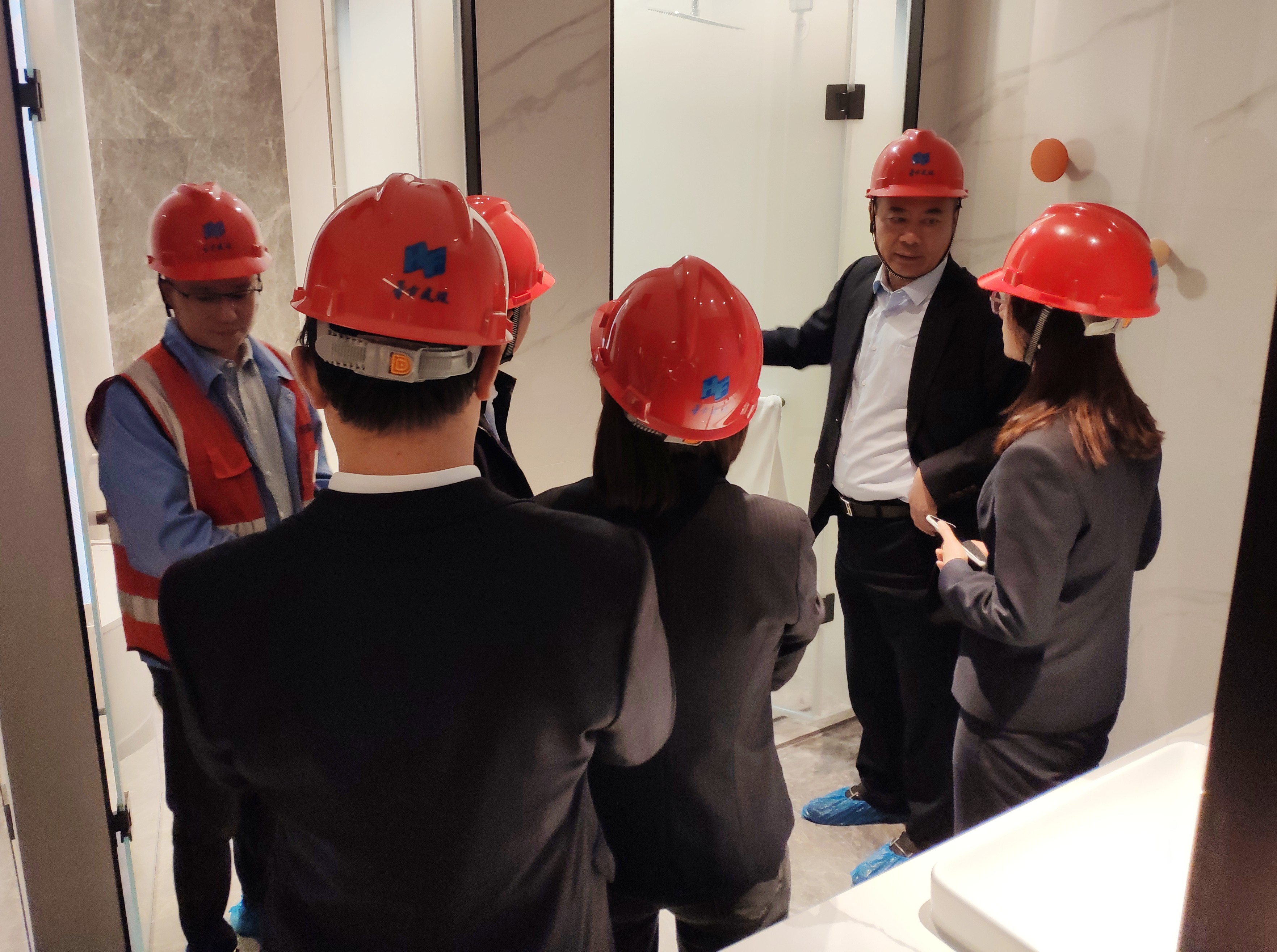 領導們對裕隆洲際假日酒店樣板房進行內部試驗收,從整體感受、設計理念、細節質量、軟裝配置、安全措施、智能客控、交付標準等全方位考慮,對局部區域存在的問題和不足之處發表了不同建議和意見,為后續的的改進和品質提升提供重要的參考。