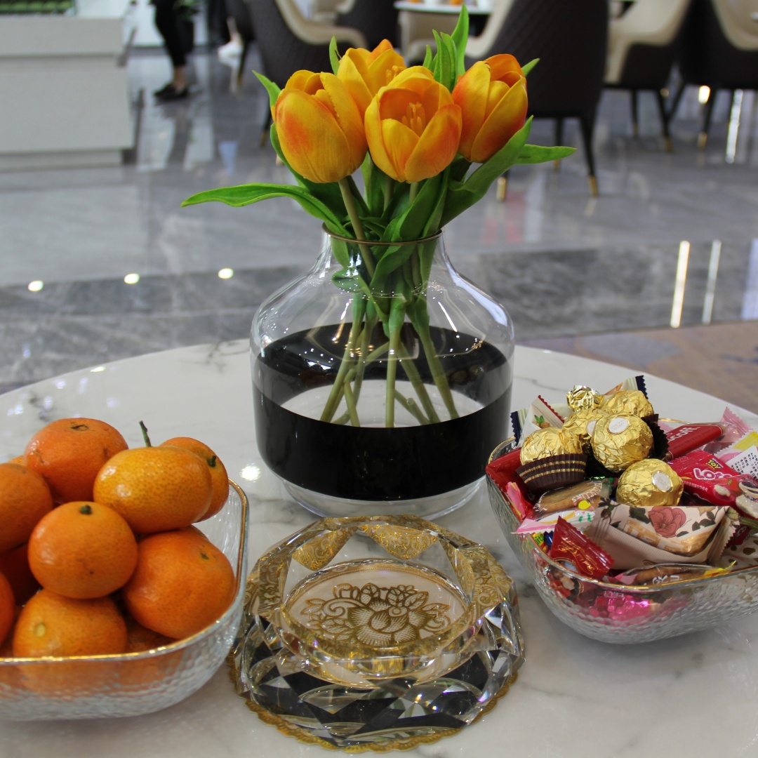 華盛置業接待中心布置得簡約又典雅,充滿了熱情與生機。會場外圍,來自各板塊公司的祝賀花籃錯落有致,芬芳四溢;會場內,各式各樣的糖果點心精心擺放,美味與甜蜜交織。每一處細節都凝聚著華盛置業的熱情與用心。