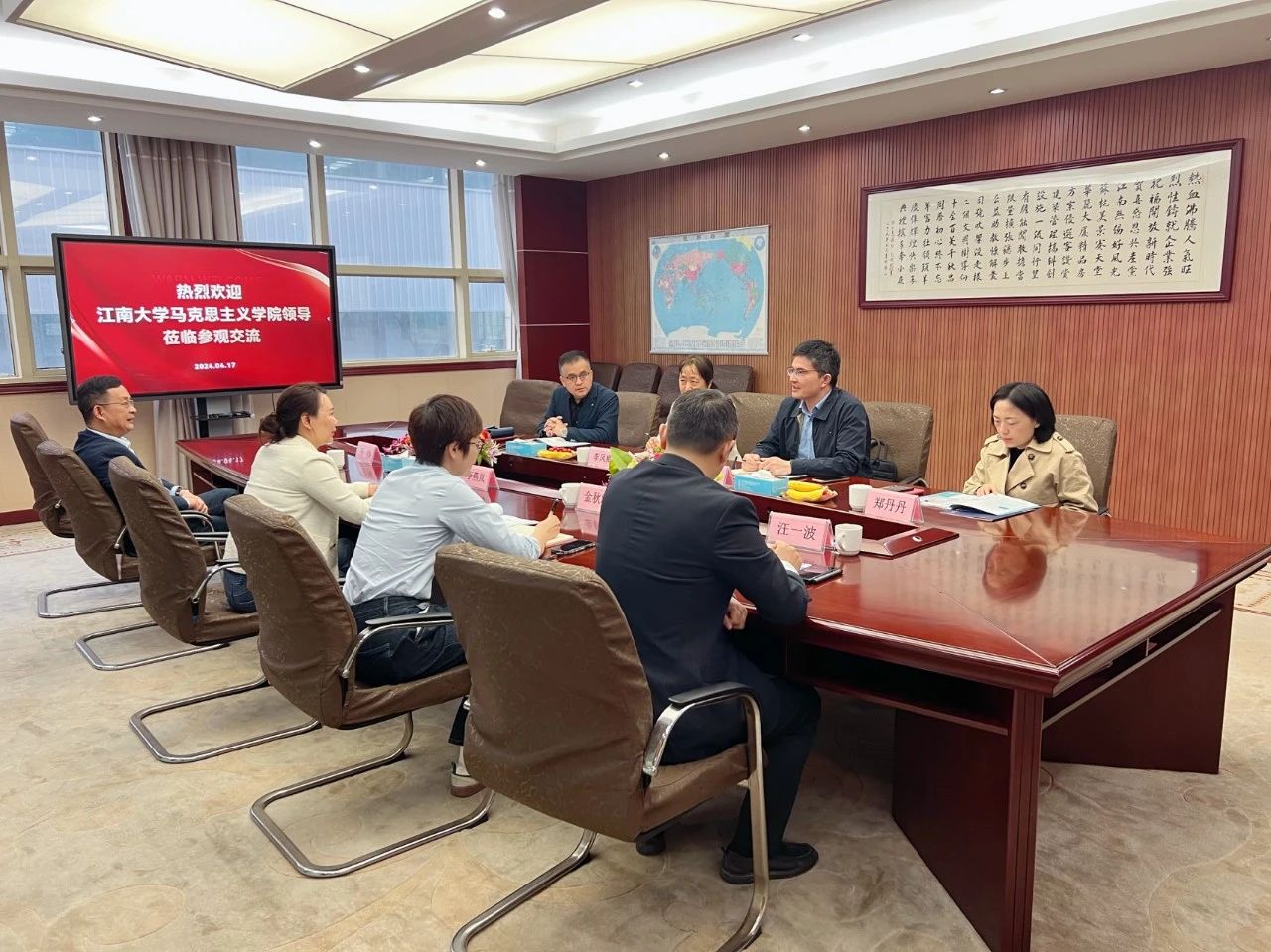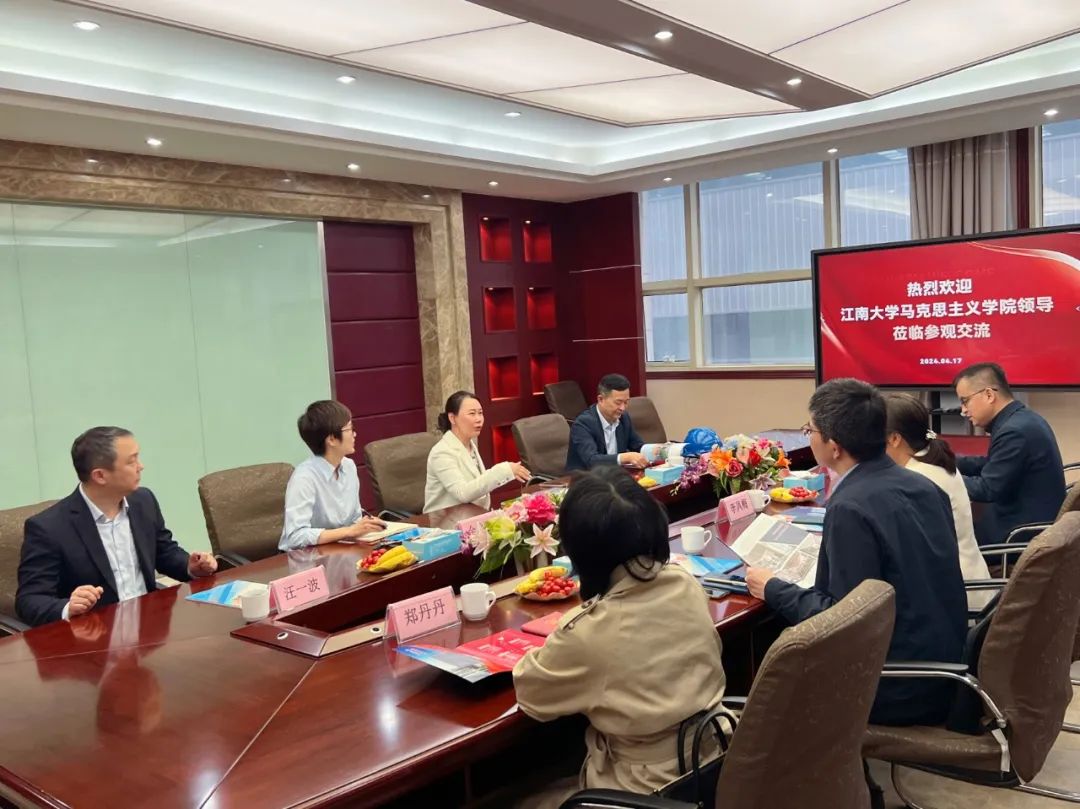 隨后,江南大學馬克思主義學院一行和公司領導就企業發展和黨建合作等方面進行了深入交流。