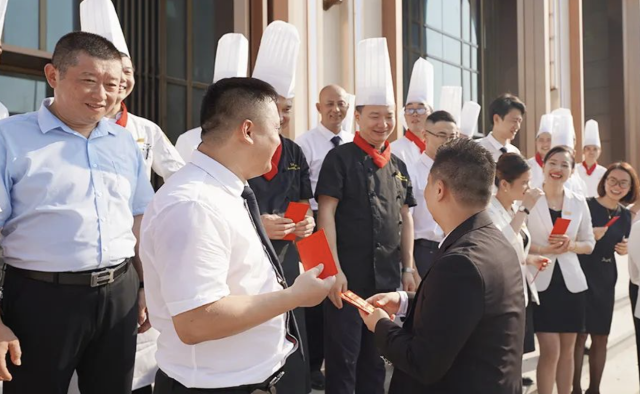 儀式尾聲,唐淼先生和李海平先生共同派發(fā)驚喜紅包,寓意“開門紅”,為現(xiàn)場增添了濃厚的喜慶氛圍。同時,也激勵著每一位參與者以更加飽滿的熱情和不懈的努力,共同書寫欣旺裕隆大酒店的輝煌篇章。