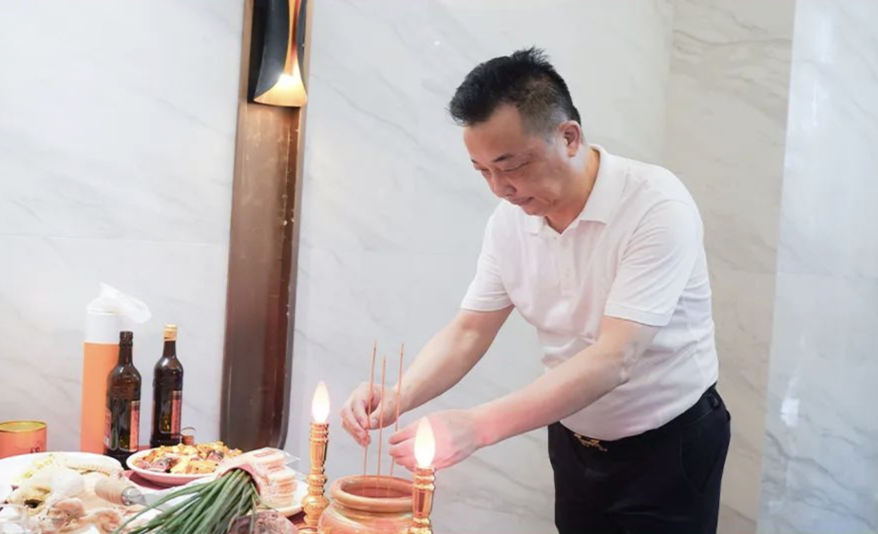 點(diǎn)火儀式結(jié)束,大家再次上香敬灶神,祈愿欣旺裕隆大酒店紅紅火火、蒸蒸日上,贏得各位賓客心。
