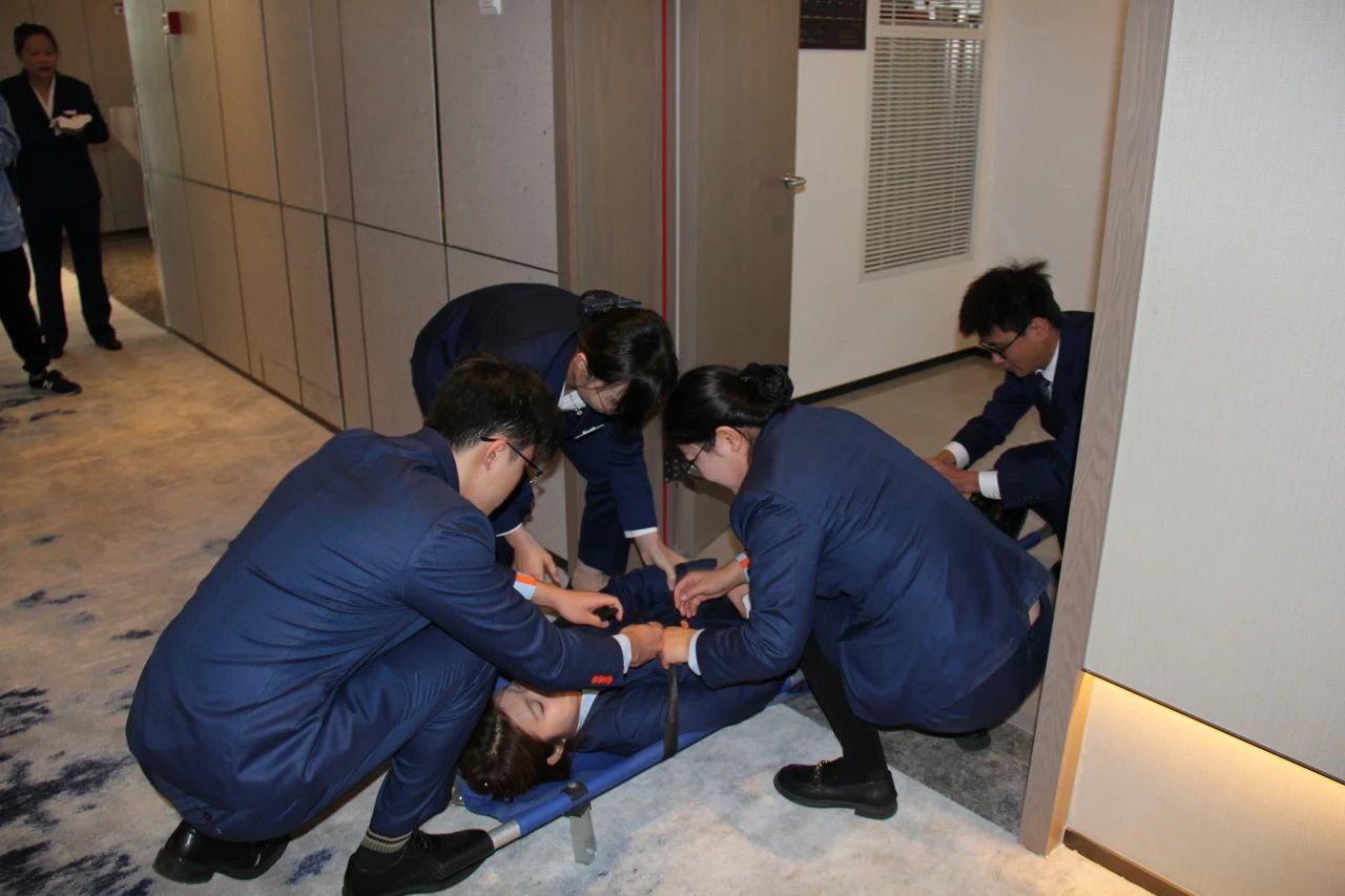 酒店工作人員也迅速啟動應急預案,過程中幫助殘障人士按照預定的疏散路線迅速、有序、安全地撤離至空地。