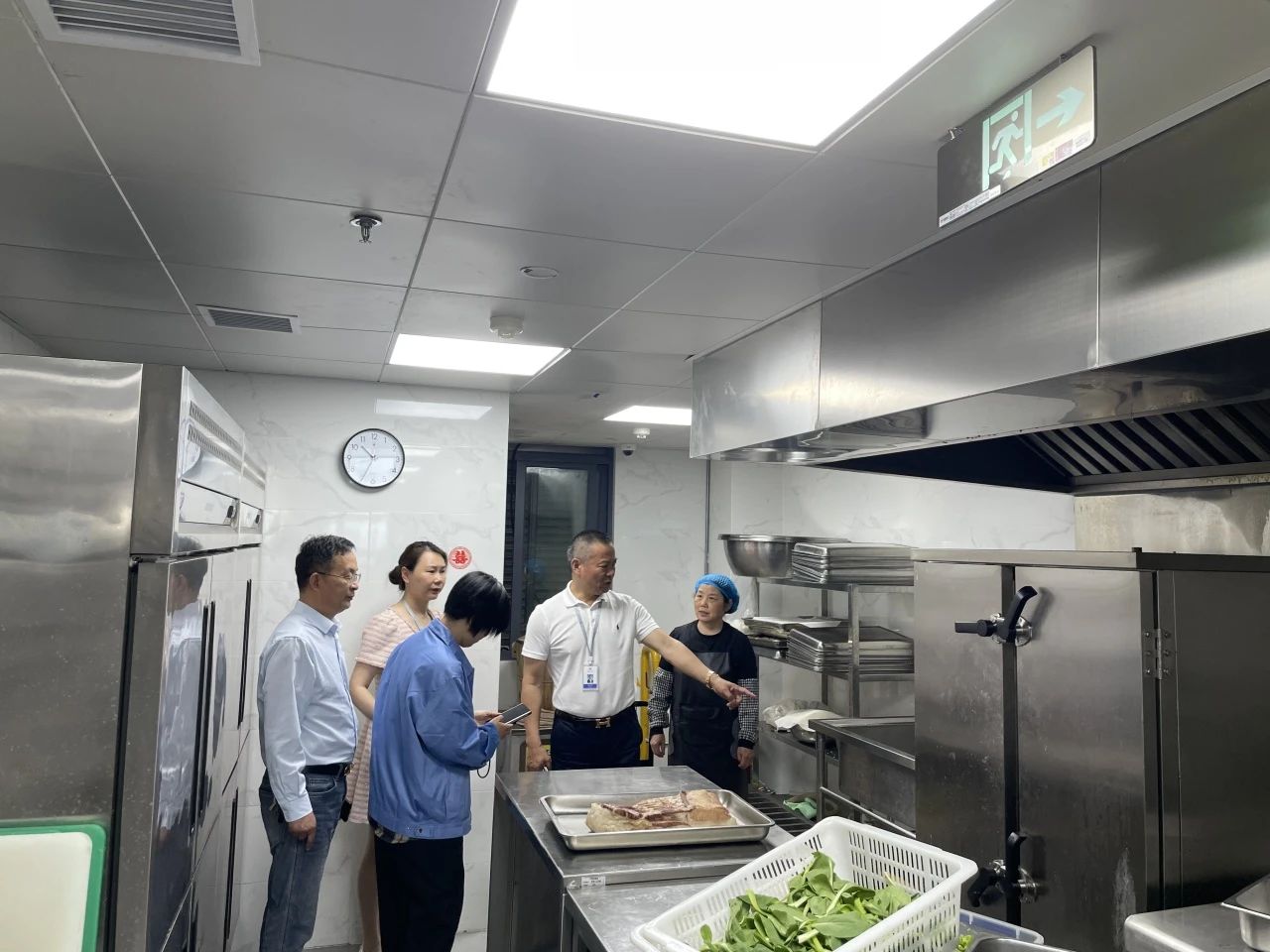 走訪組首先來到18樓共享餐廳和咖啡店,要求經營者嚴格落實食品安全管理制度,做好整體經營的規劃安排。